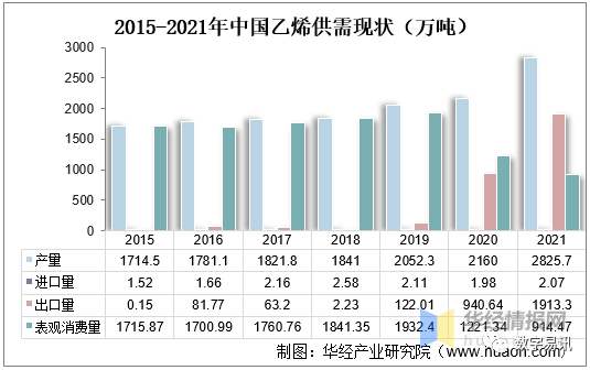 21年中國(guó)乙烯供需現(xiàn)狀(萬噸)