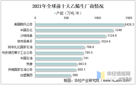 2021年全球前十大乙烯生廠商情況